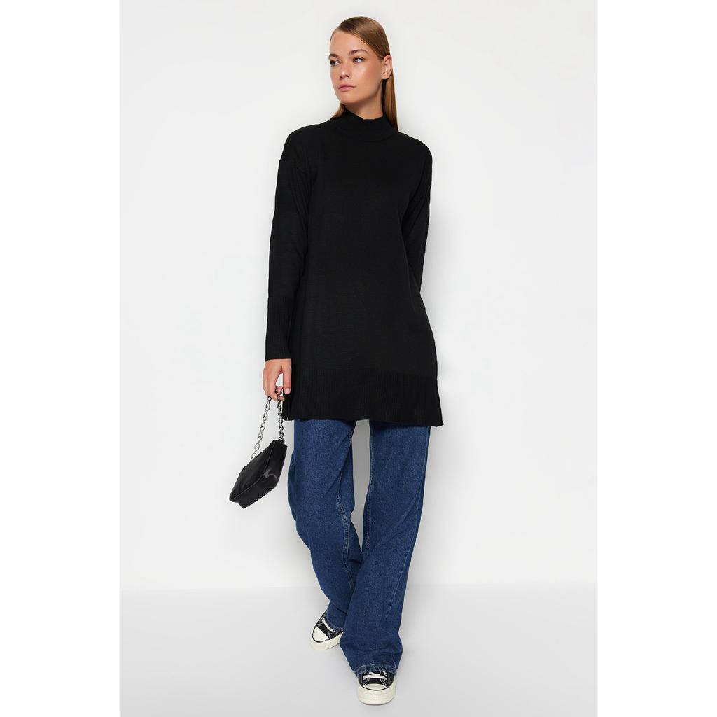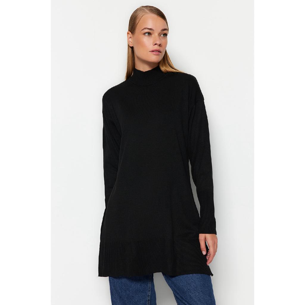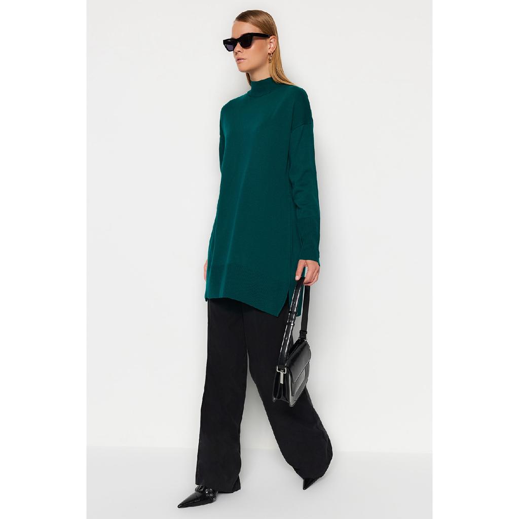 Темно-зеленый вязаный свитер с воротником-стойкой Tctaw24ak00007