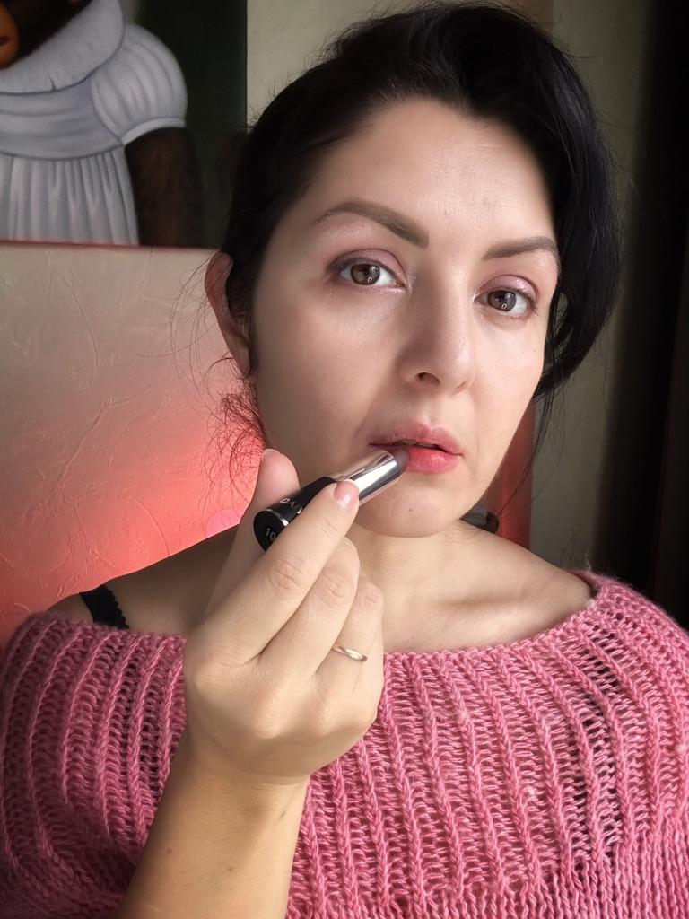 Матовая помада. Модный оттенок. Для меня суховата немного, люблю более влажный эффект. Эта помада требует очень гладких и подготовленных губ, цвет не очень плотный. Но в целом, неплохая. В несколько слоев красиво лежит. Приятный аромат.