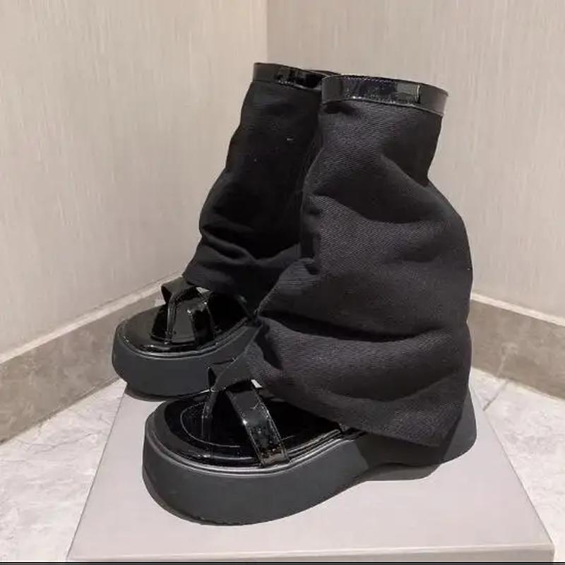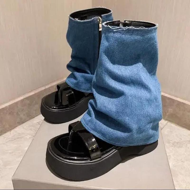 Сексуальные шлепанцы, сандалии, джинсовые синие ботинки на плоской платформе, женские туфли на плоской подошве в римском стиле, черные, белые