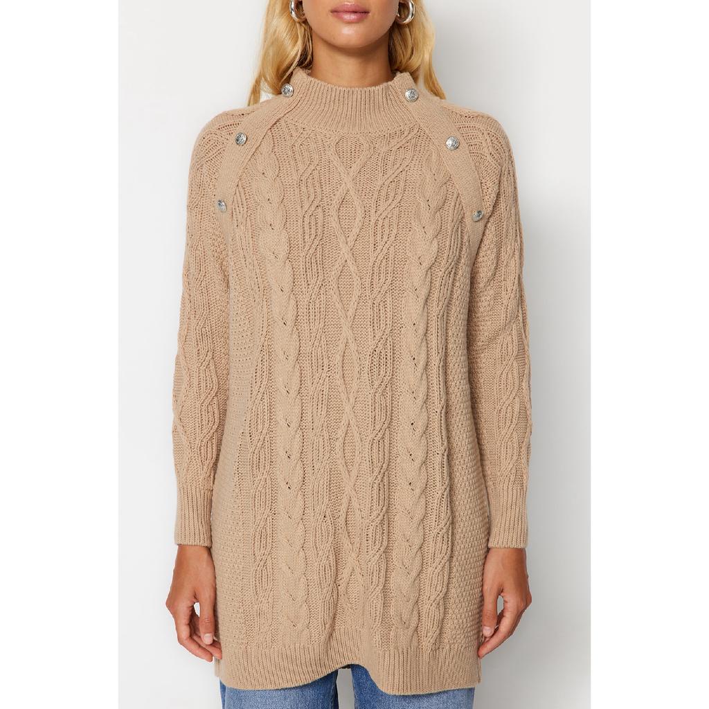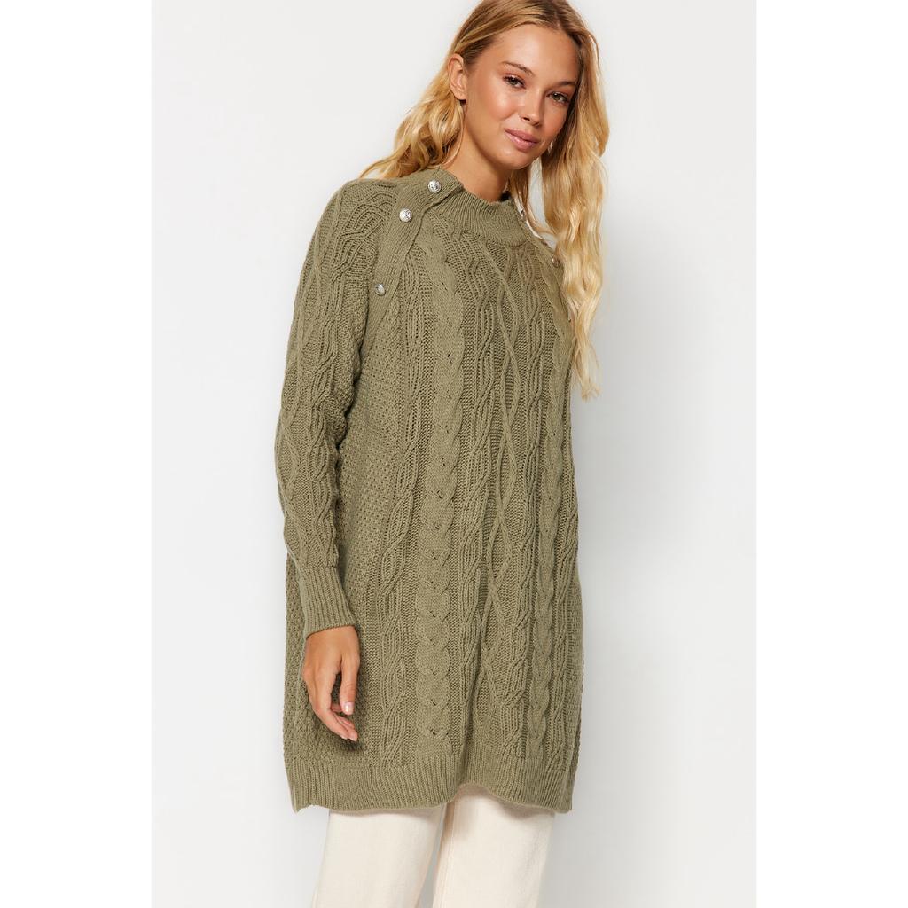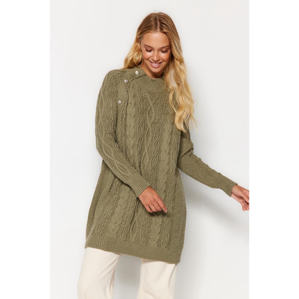 Аксессуар цвета хаки, плетеный трикотаж с детальными волосами, свитер Tctaw24ak00165