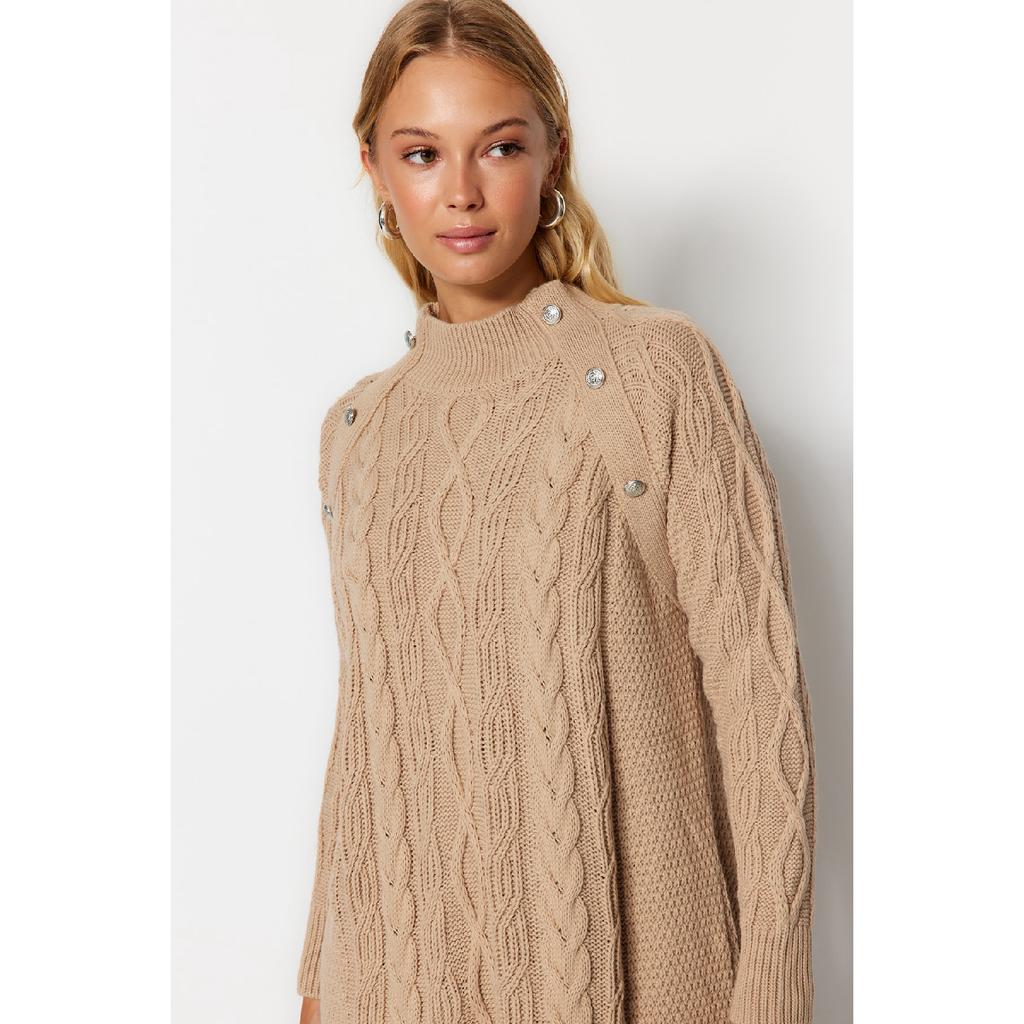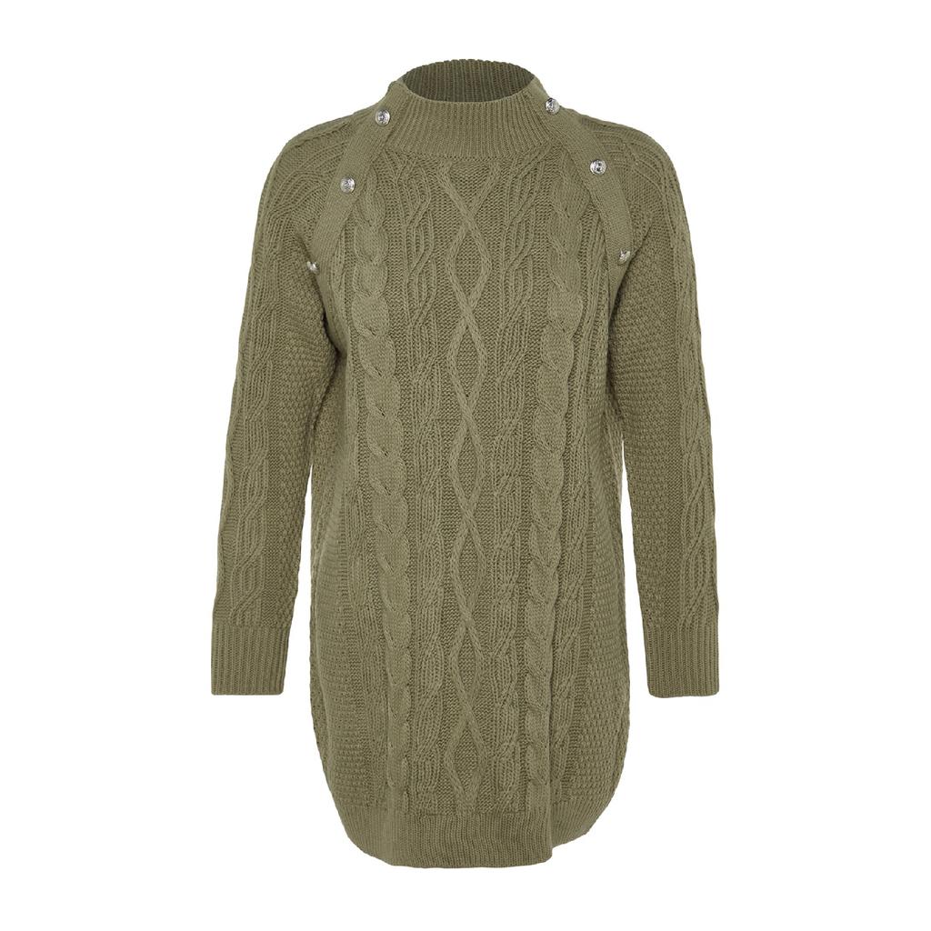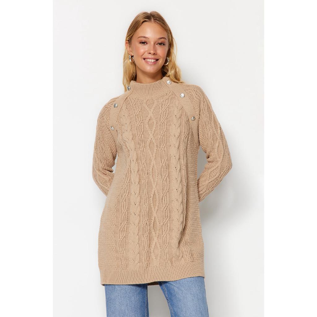 Аксессуар цвета хаки, плетеный трикотаж с детальными волосами, свитер Tctaw24ak00165