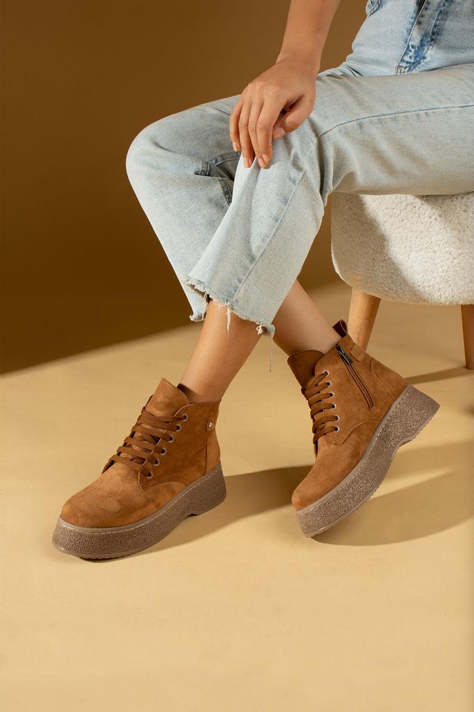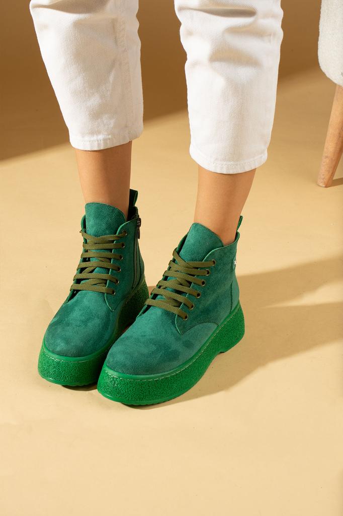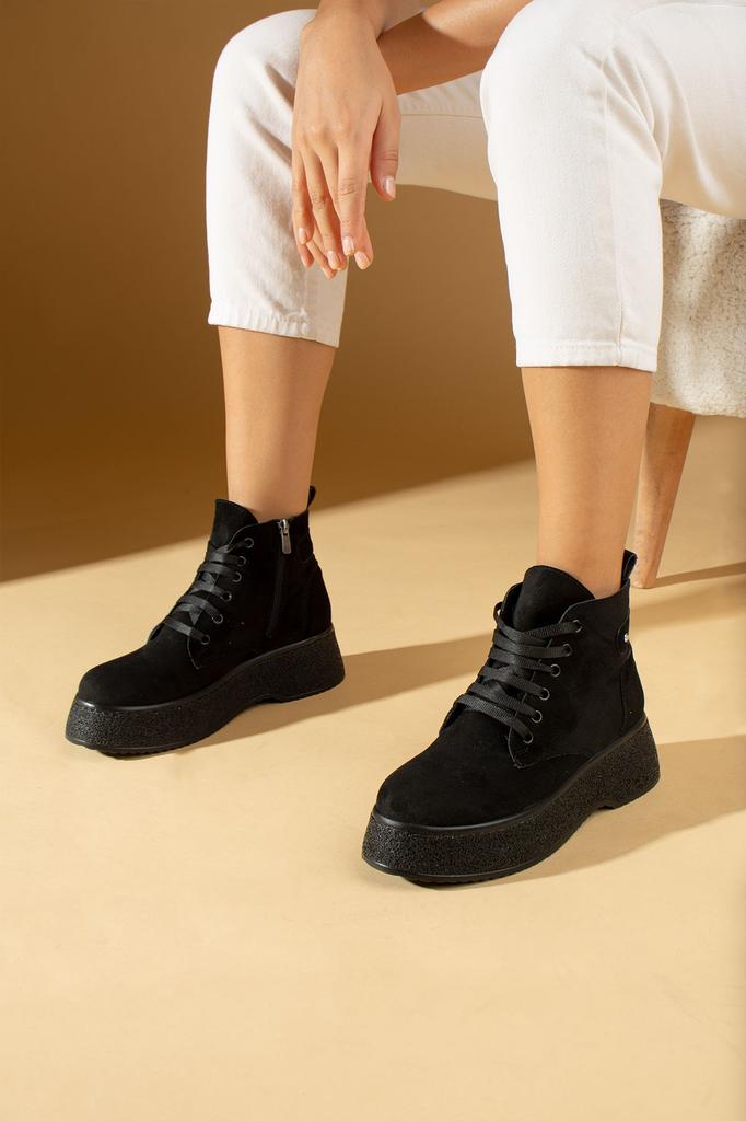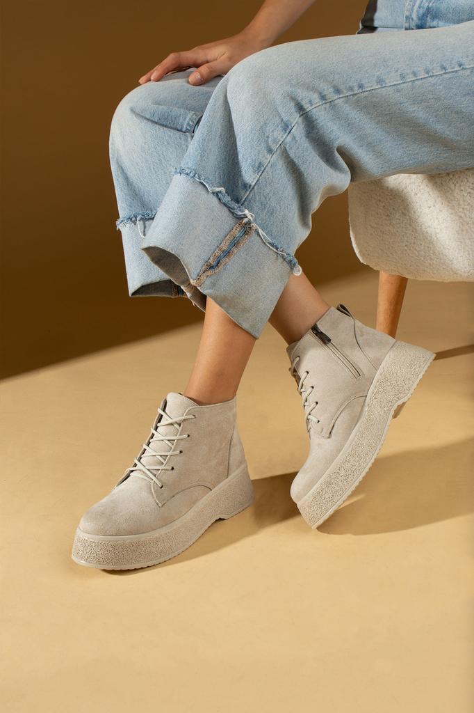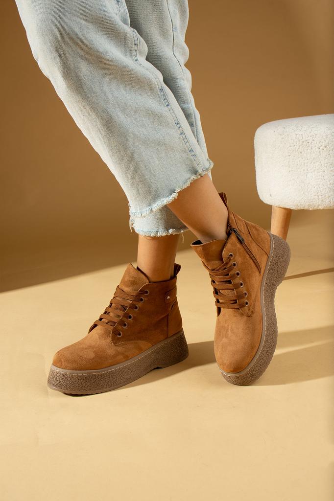 Стильные женские замшевые ботинки на шнуровке с удобной подошвой 59-901-23Замша