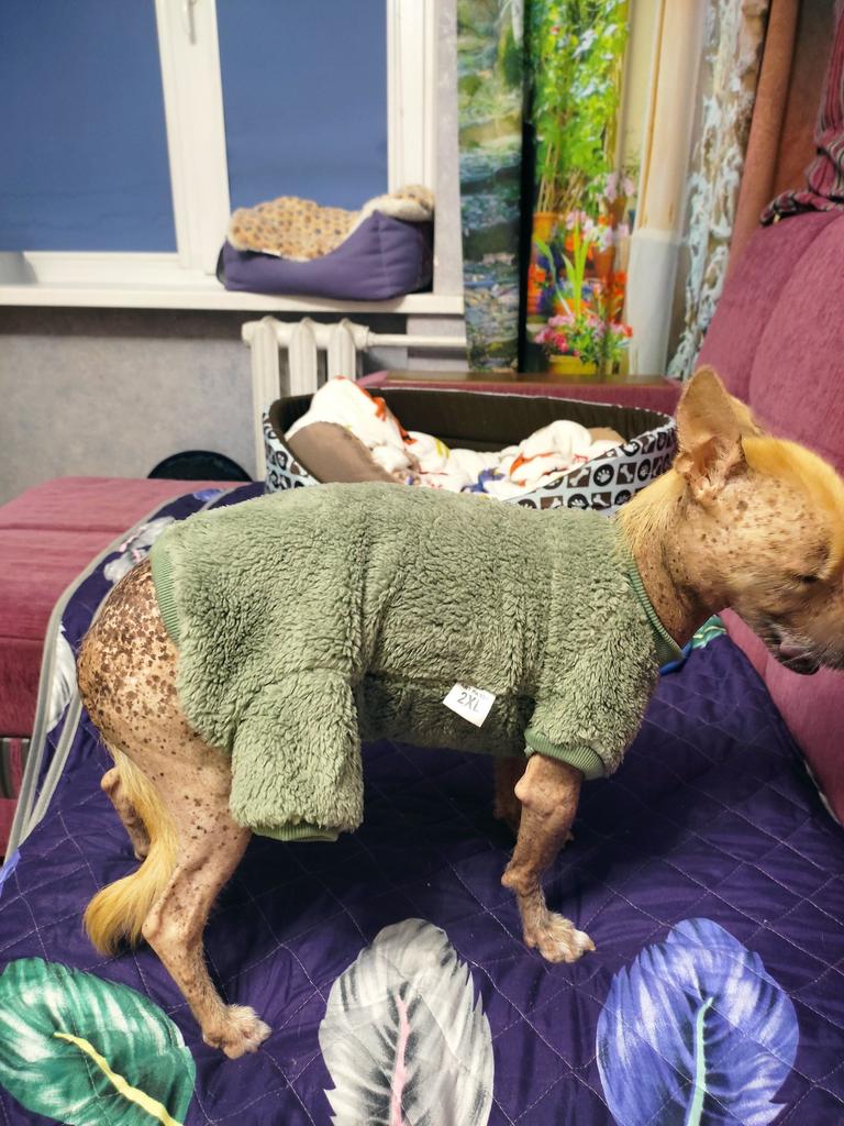 Отличная пижамка!!! На Йорка 2,2кг. размер М отлично сел, качество хорошее, запаха нет, нитки не торчат, швы ровные! Брала по меркам, всё прям тютелька в тютельку.