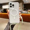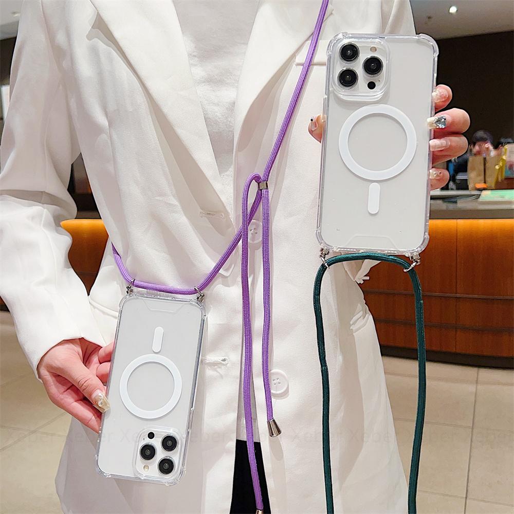 Ремешок через плечо для Magsafe, магнитный чехол с беспроводной зарядкой для iPhone 11 12 13 14 15 Pro Max X XR XS 7 8 Plus SE, прозрачный чехол