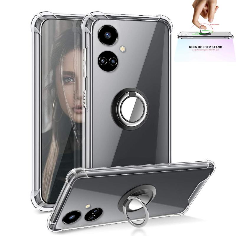 Прозрачный чехол с подставкой и кольцом для INFINIX TECNO Camon 19 Pro 18 17 16 15 pro, кронштейн-держатель, подушка безопасности, противоударный, прозрачный, мягкий силиконовый защитный чехол для телефона