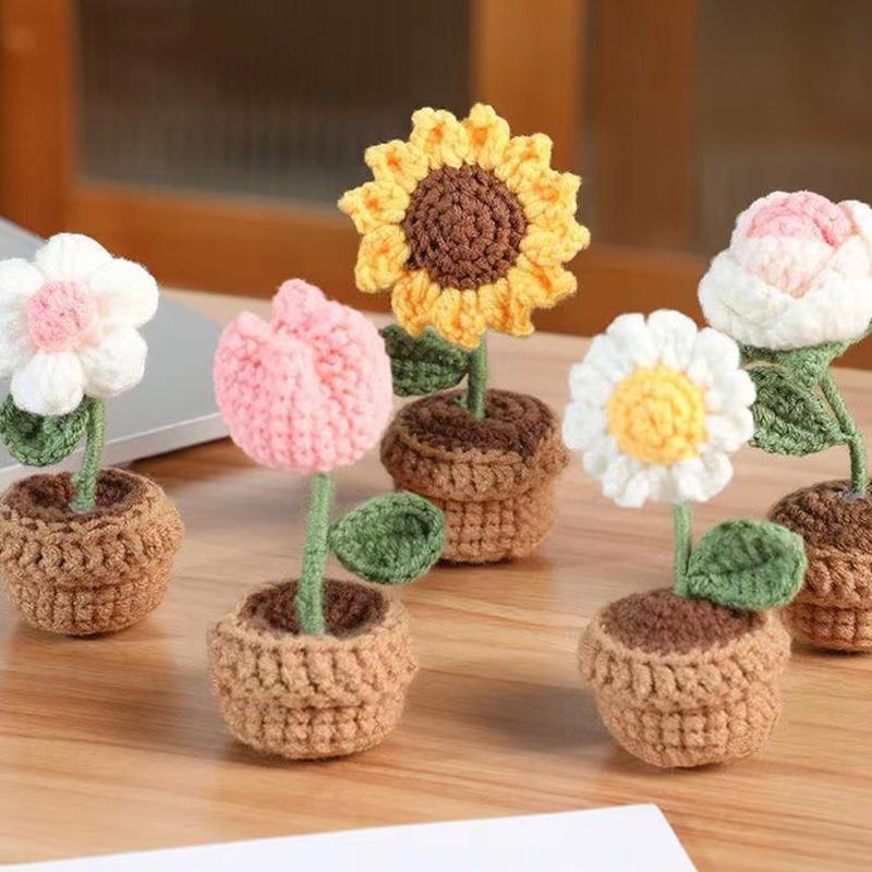 1 шт. настольный декоративный ручной вязаный цветок роза тюльпаны букет в горшке вязаный букет подарок