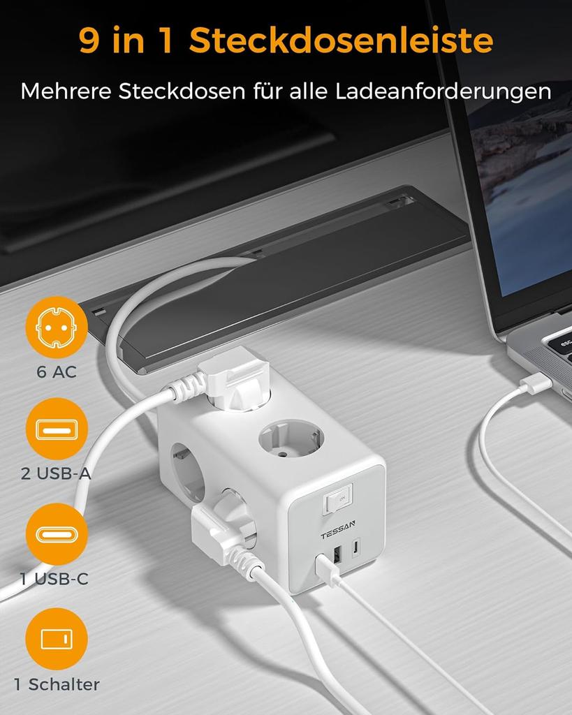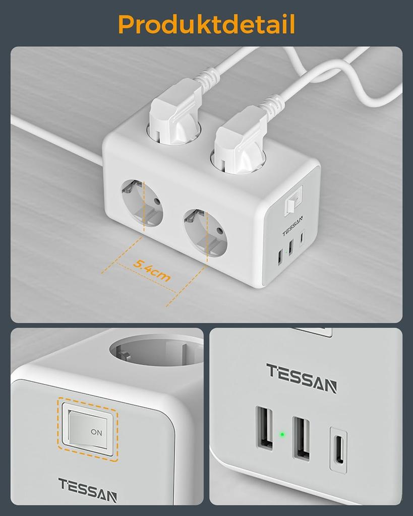 Tessan Удлинитель с несколькими вилками, 6 розетками переменного тока и 3 портами USB, удлинителем европейского стандарта с защитой от перегрузки переключателя для дома