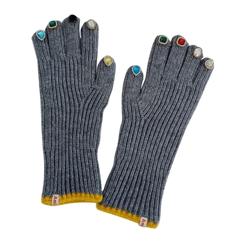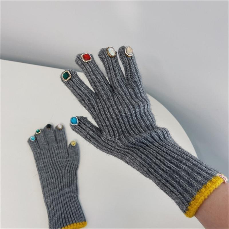 Перчатки со стразами, женские вязаные перчатки с декором из стразов на кончиках пальцев, зимние теплые перчатки с длинными пальцами, роскошные варежки