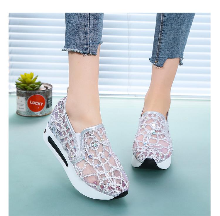 Женские Туфли На Танкетке, Сетка С Пайетками, Дышащая Обувь, Женщины, Золото Серебро, Кроссовки На Платформе, Женщины, Туфли На Танкетке, Увеличивающие Рост, Повседневная Обувь