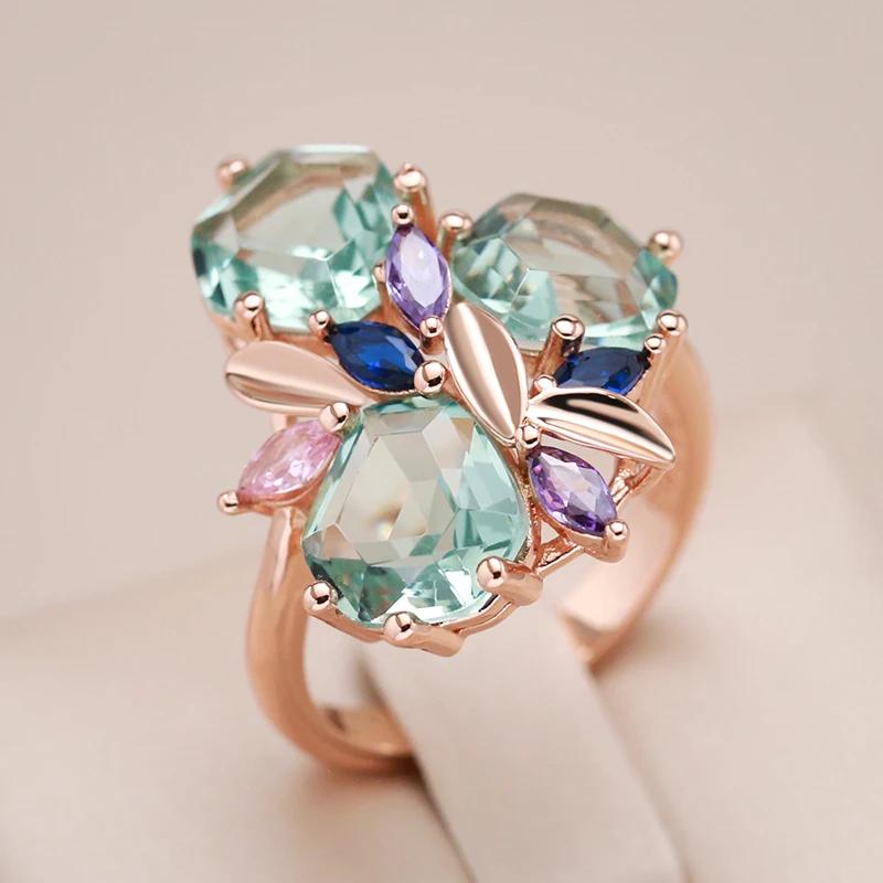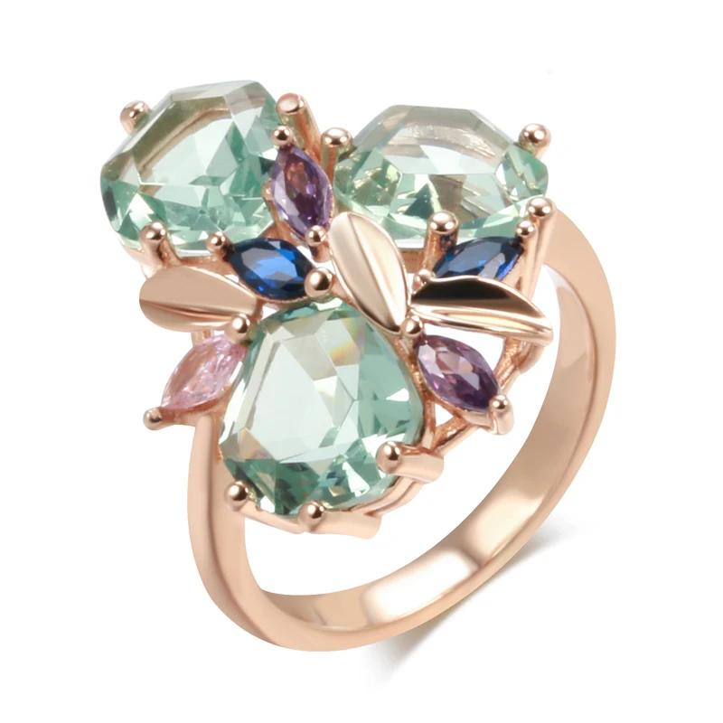 Большие кольца со светло-зеленым цирконом геометрической огранки для женщин, роскошные текстурированные ювелирные изделия