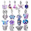 Новый Стерлингового Серебра 925 Фиолетовый Мурано Бусина Анютины Глазки Цветок Висячие Подвески Подходит Оригинальный Бренд Браслет И Ожерелье 925 Ювелирные Изделия Подарок