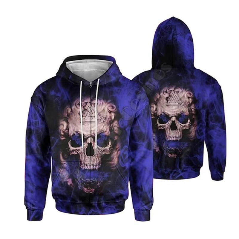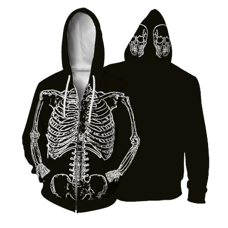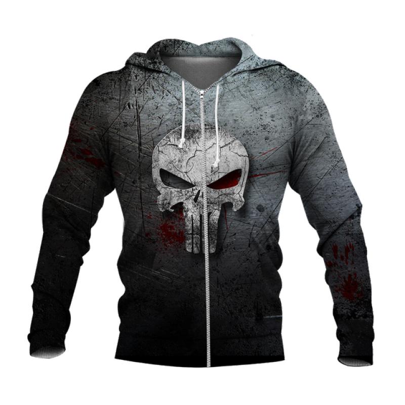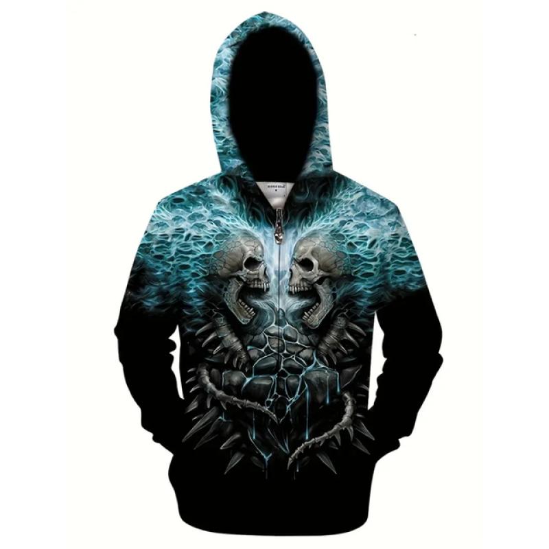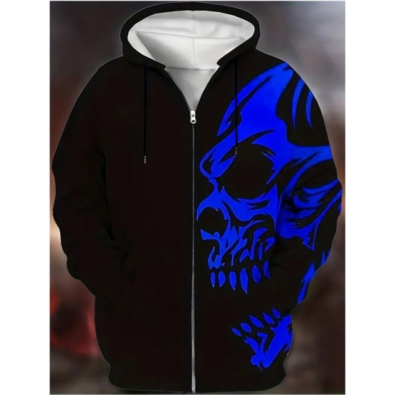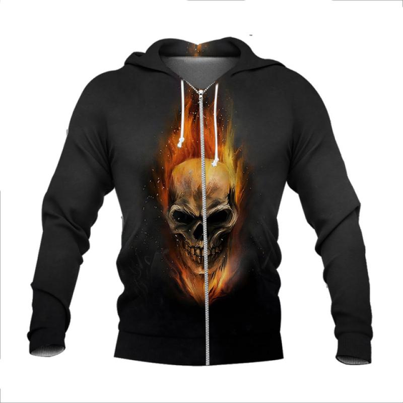 Мужская толстовка на молнии с черепом, топ на молнии с 3d принтом, осень-зима, винтажная куртка с длинными рукавами, модная мужская одежда оверсайз