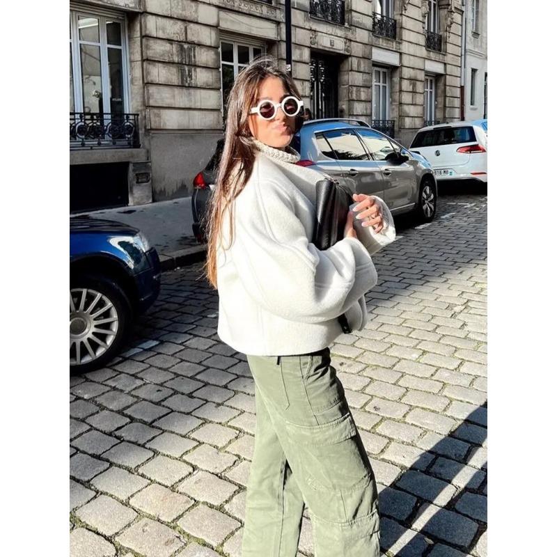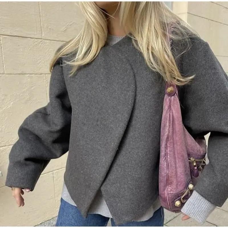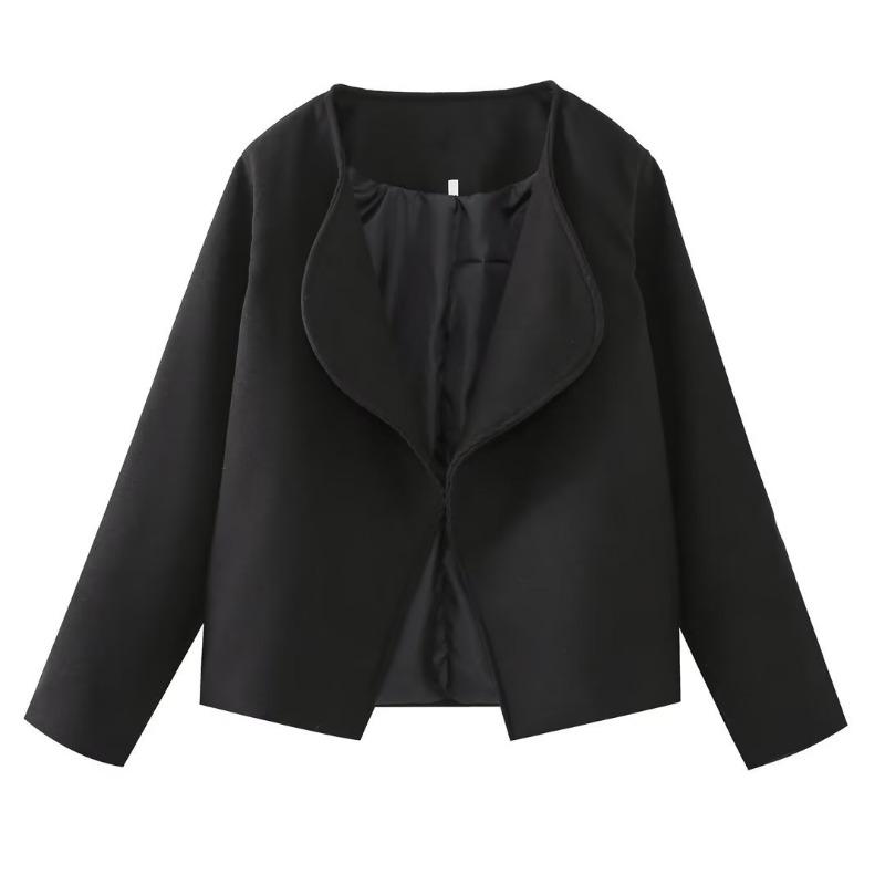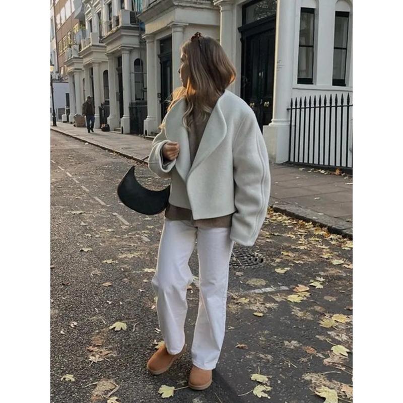 Теплое шерстяное укороченное пальто Женская мода V-образный вырез Длинный рукав Открытая строчка Пальто Зимние женские куртки Короткий кардиган Куртка Уличная одежда