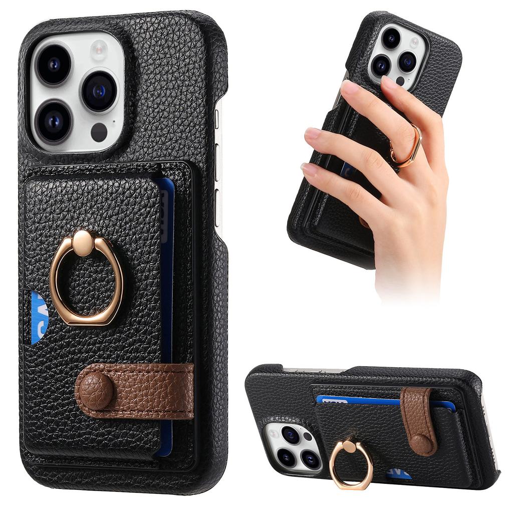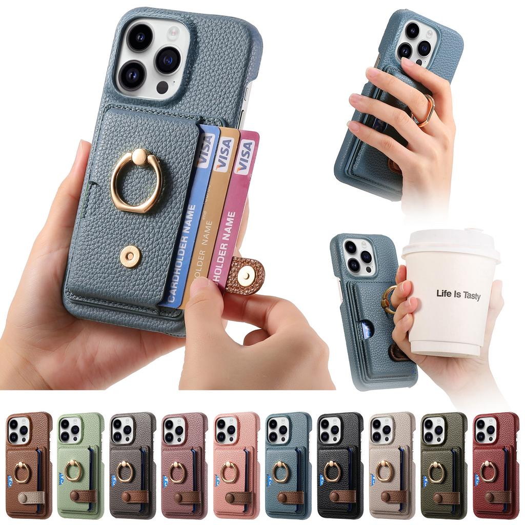 Кожаный чехол с отделением для карт с узором личи, кошелек с кольцом-держателем для iPhone 15 14 Plus 13 12 Pro Max 13 12 Mini 11 Pro Max XS MAX XR X 8P 7P 6P SE 2020