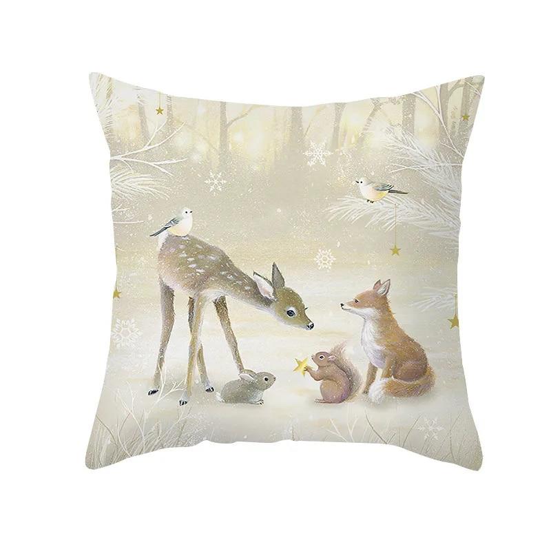 Зимний лес снежная сцена животное олень снеговик белка птица лиса монах диван сиденье спальня автомобиль офис рождественское украшение наволочка