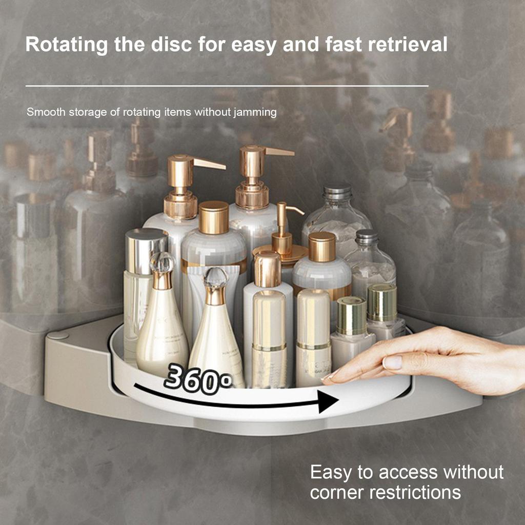 Вращающаяся на 360 градусов полка для хранения — идеальное решение для организации предметов первой необходимости в ванной комнате, избавляющее от необходимости опрокидывать предметы и вытягивать руку, экономя время на поиске.