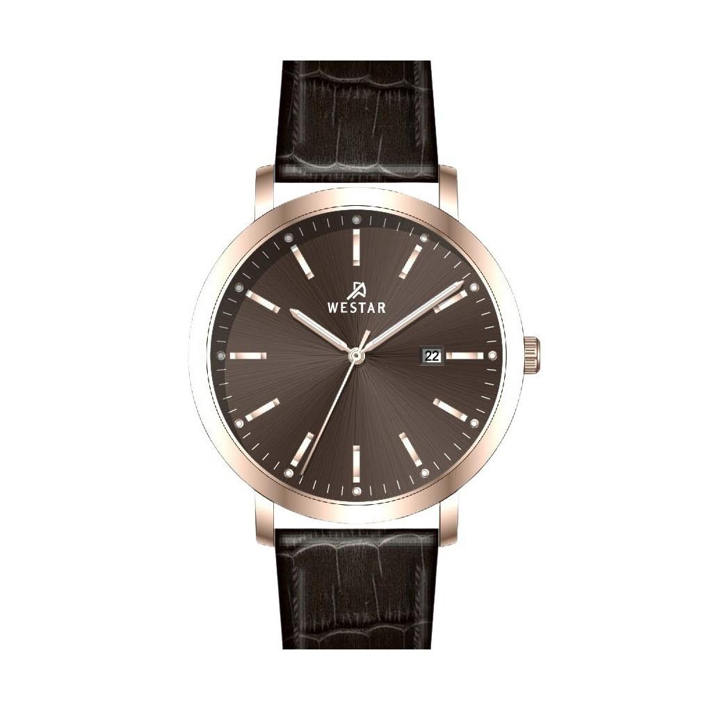 Westar Профиль Кожаный ремешок Кварцевые мужские часы с коричневым циферблатом 50216PPN620