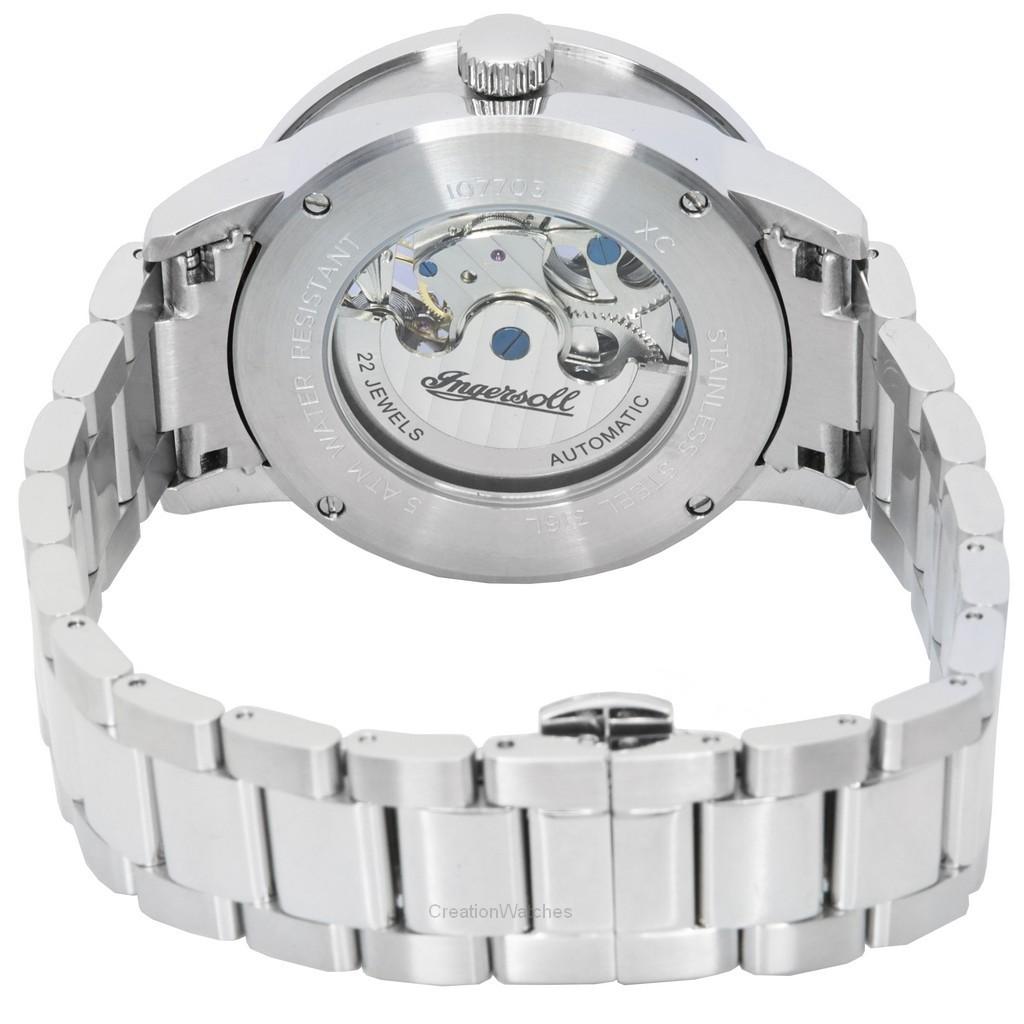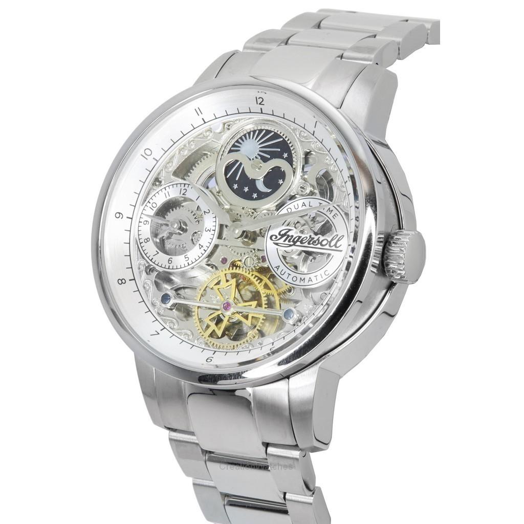 Ingersoll Мужские часы Jazz Sun and Moon Phase с серебряным циферблатом и скелетом из нержавеющей стали I07703