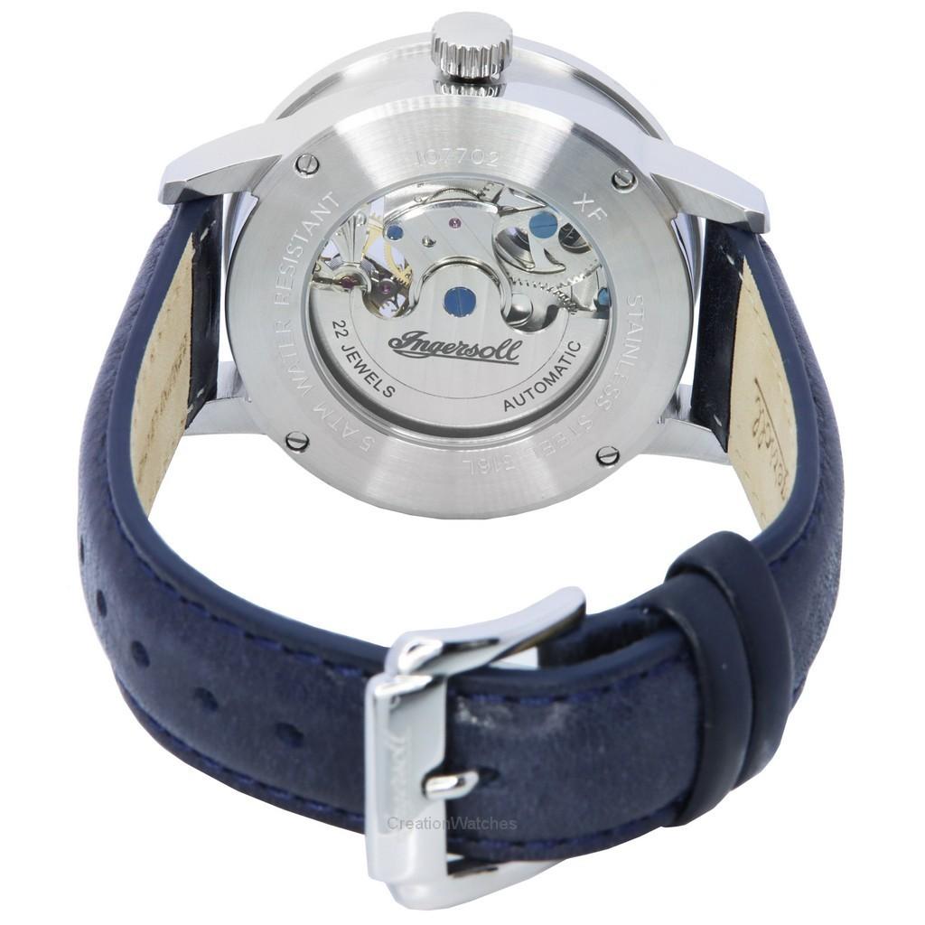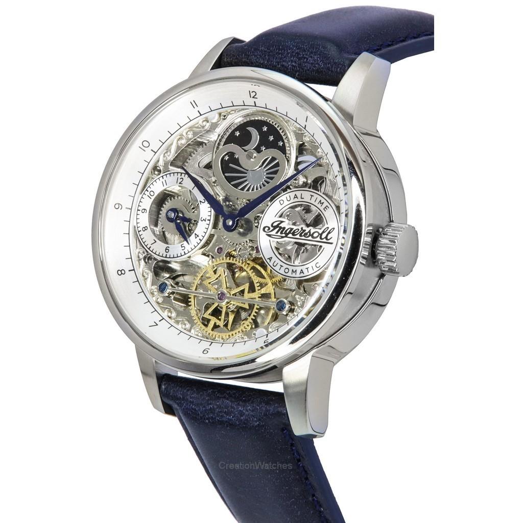 Ingersoll Мужские часы Jazz Sun and Moon Phase с кожаным ремешком, скелетонизированным серебряным циферблатом I07702
