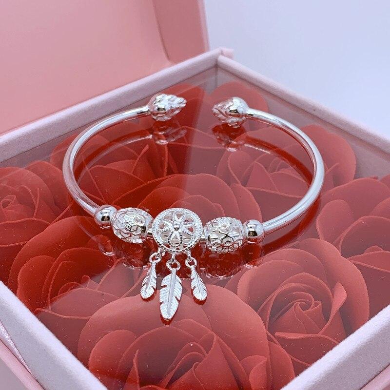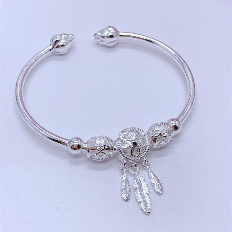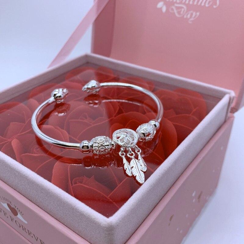 Стерлингового серебра 925 пробы Ловец снов с кисточками и перьями, браслет и браслет для женщин и девочек, элегантные вечерние украшения на день рождения, подарок Sl465