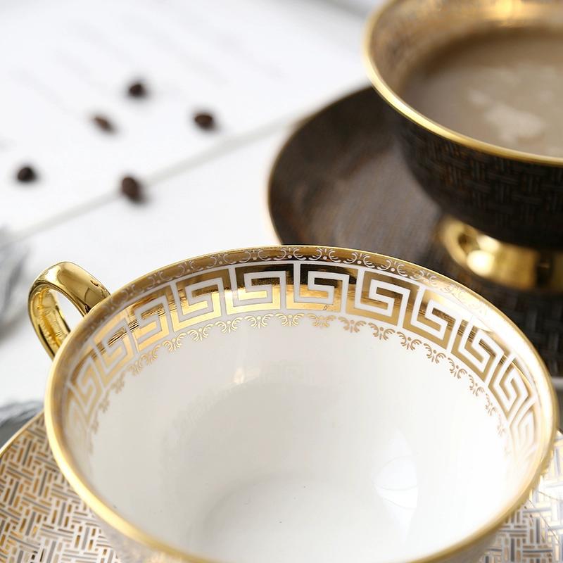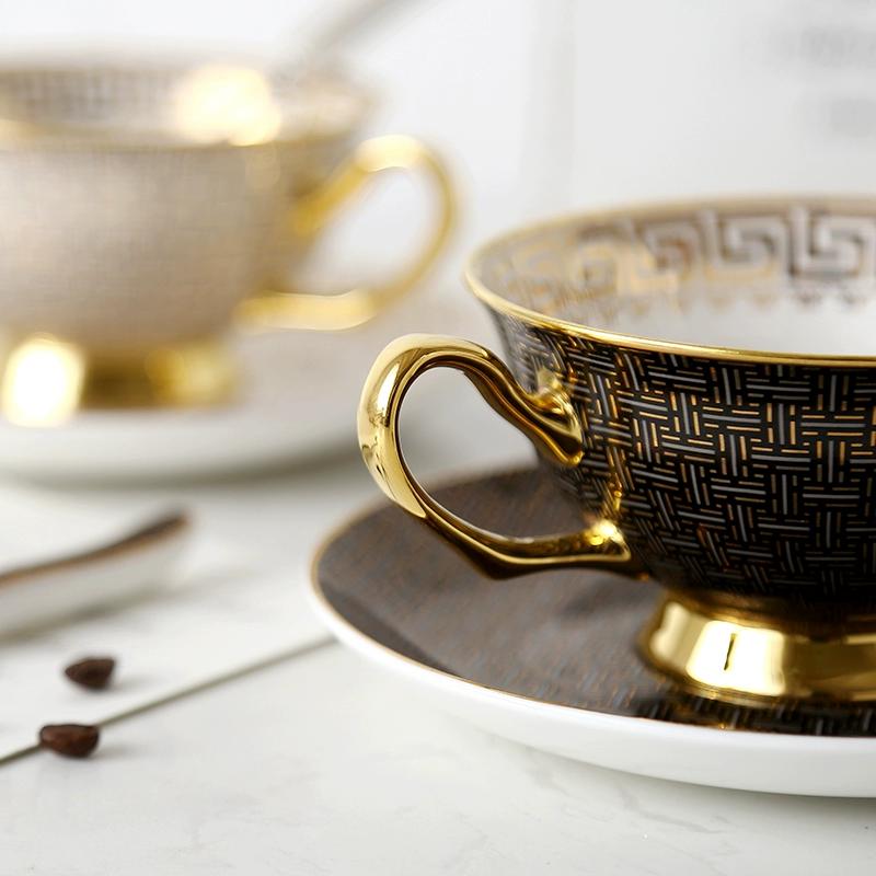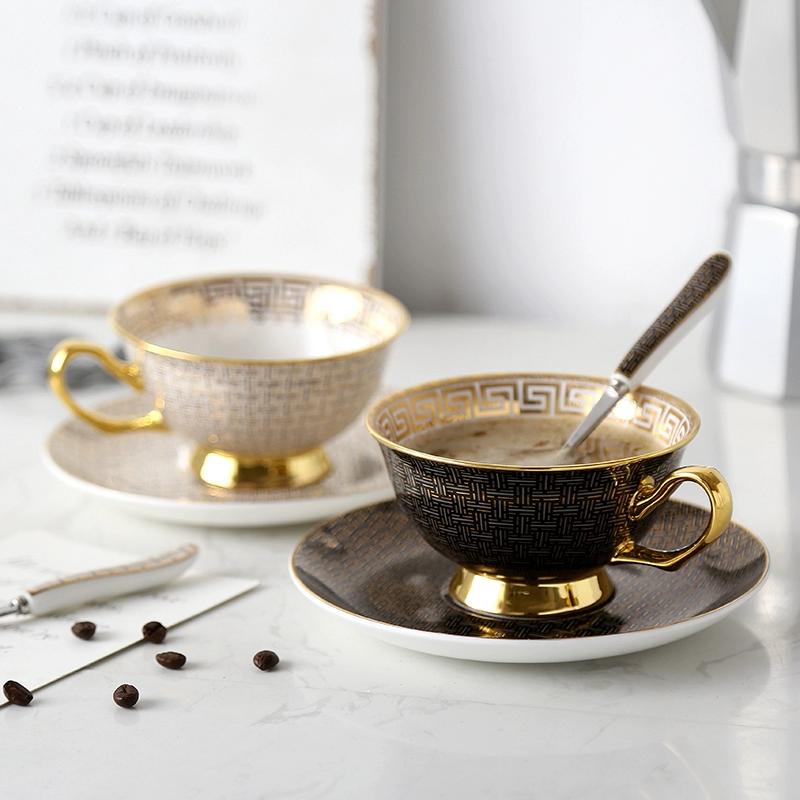 1 Набор кофейная чашка и блюдце из костяного фарфора Белый/черный клетчатый Чайная чашка Золотая инкрустация края Посуда Подарок