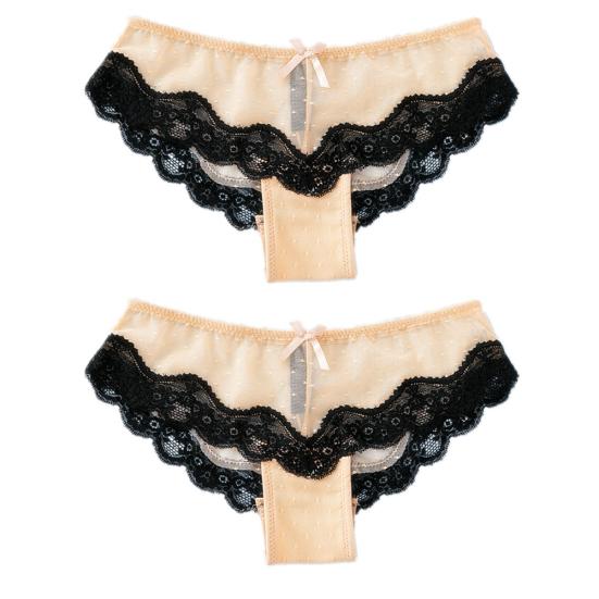 2 шт. женские сексуальные кружевные лоскутные прозрачные эластичные трусы с бантом и низкой талией, трусики