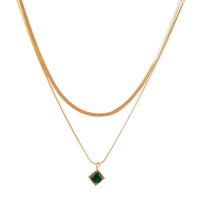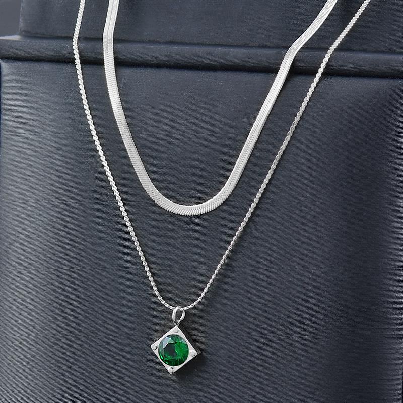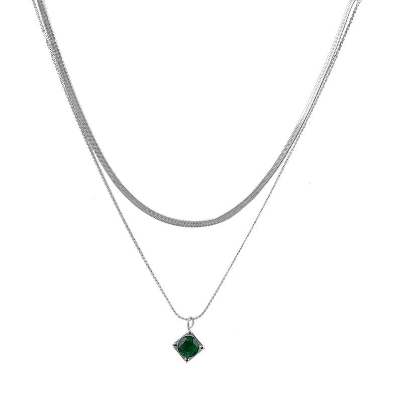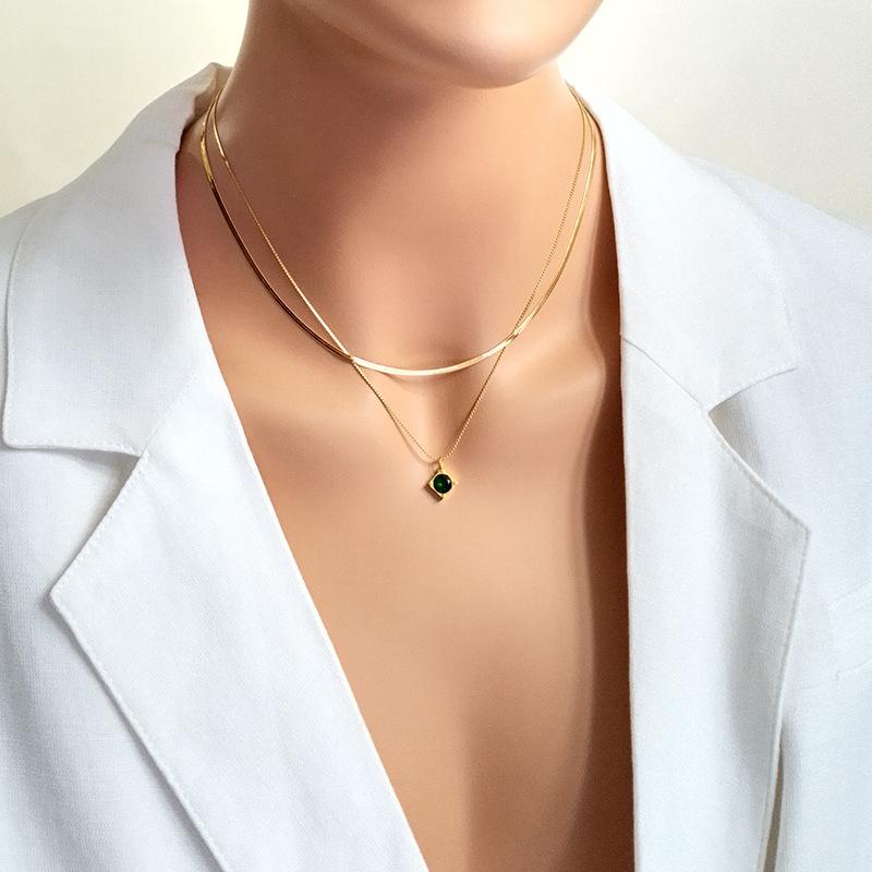 Двухслойная цепочка на ключицу из титана, титана, стали, зеленого вермикулита.