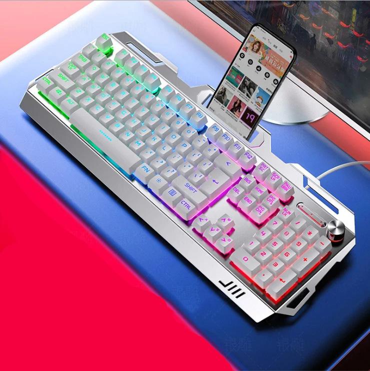 V2 104-клавишная клавиатура, механическая игровая клавиатура, водонепроницаемая настольная проводная RGB игровая компьютерная периферия с держателем для телефона