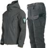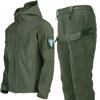 Мужской теплый уличный армейский камуфляжный комплект одежды в стиле милитари с капюшоном для охоты, флисовое пальто, костюм, тактическая куртка, комплект