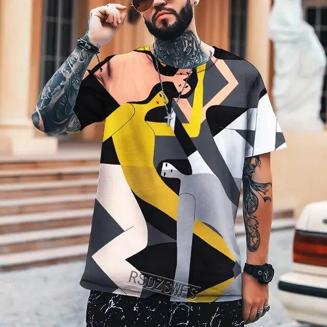 Летняя мужская футболка разных размеров с 3D принтом, мужские топы с юмором, абстрактная забавная вышивка, высокое качество