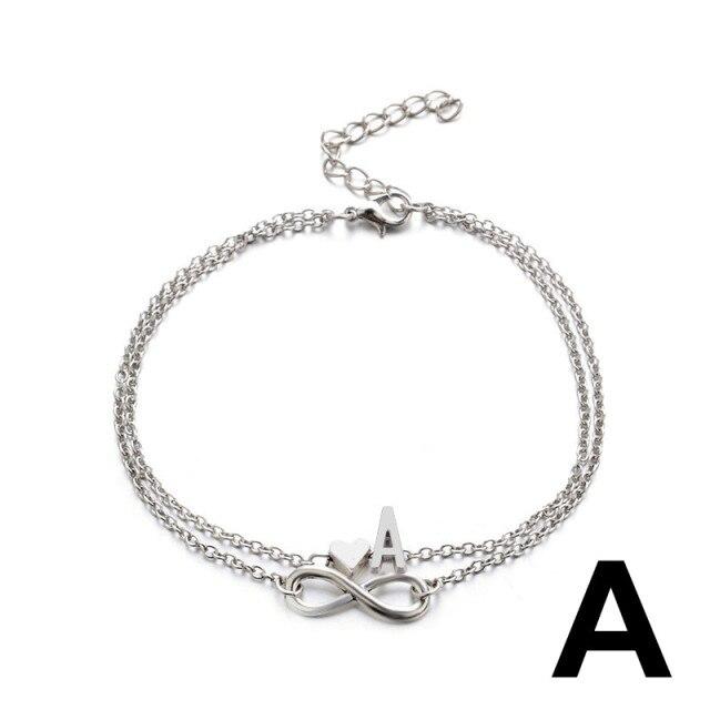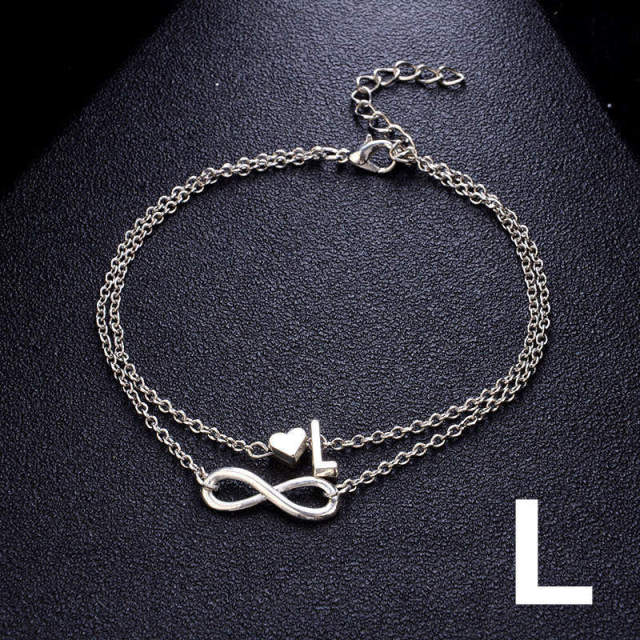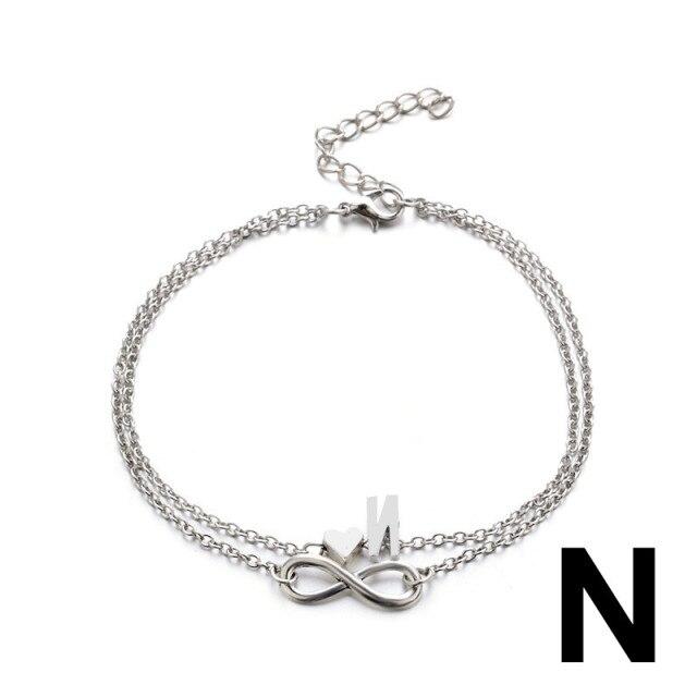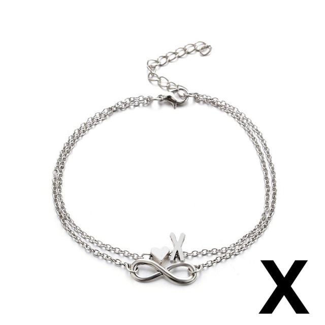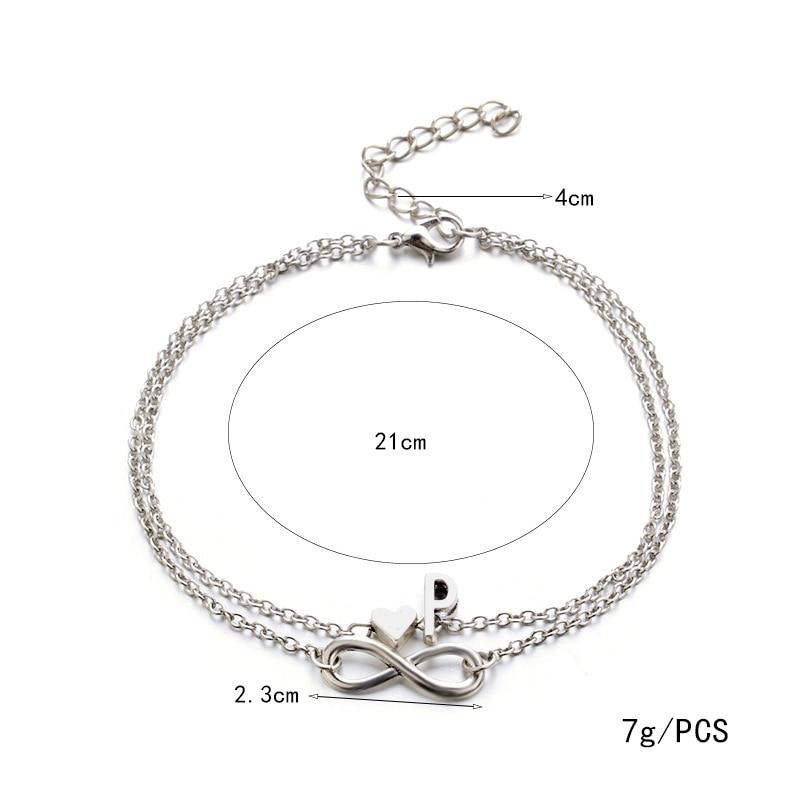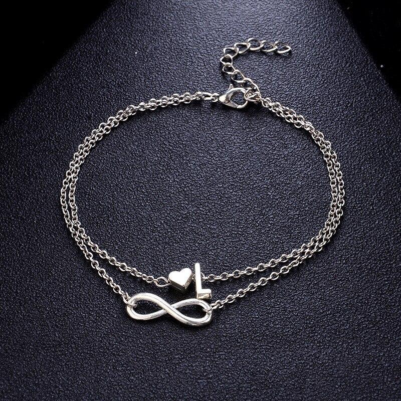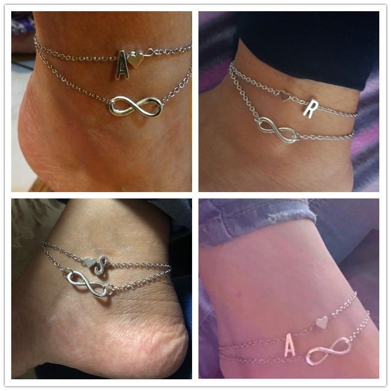 Бохо Начальный ножной браслет Сердце Бесконечность Серебряный цвет Браслет на щиколотке на цепочке для ног 26 Ножные браслеты с буквами для женщин Лодыжка Пляжные украшения для ног