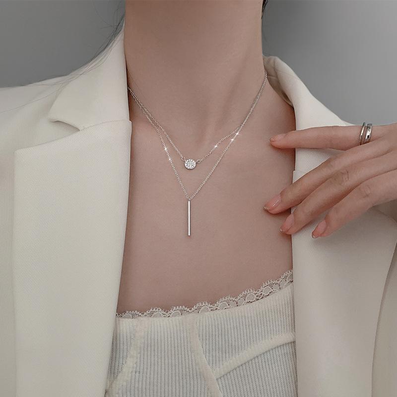 Стерлингового серебра 925 пробы с квадратным вспышкой и бриллиантами, круглое двойное ожерелье, женская цепочка на ключицу, ювелирные украшения, аксессуары для вечеринки и свадьбы