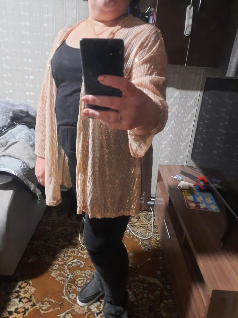 Повседневный жакет-кардиган с блестящими пайетками для эффектного образа.