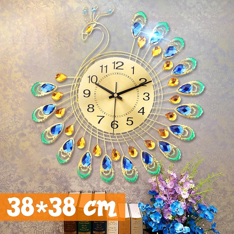 38X38 см 3D золотые настенные часы в форме павлина с бриллиантами, металлические часы для домашнего декора, комнаты, офиса, часы «сделай сам», ремесленные украшения, подарок 38 X 38 см