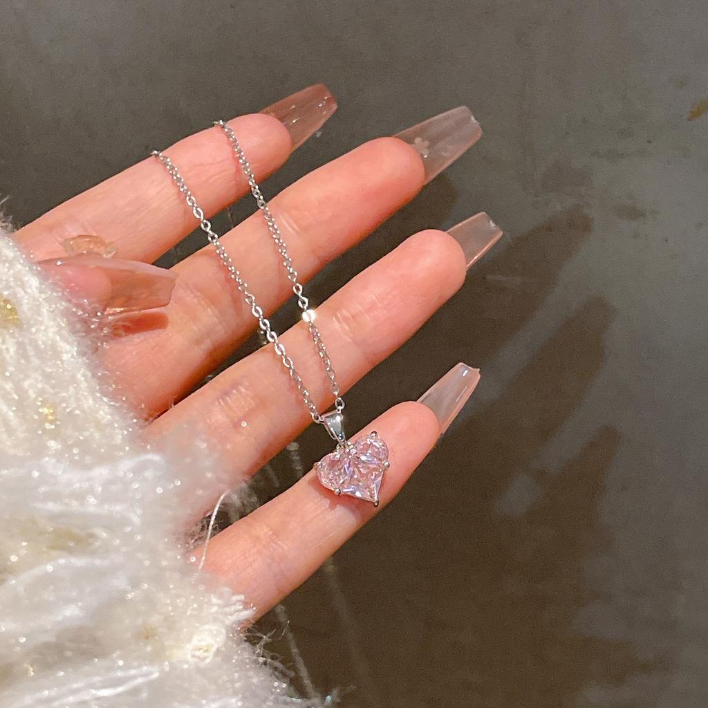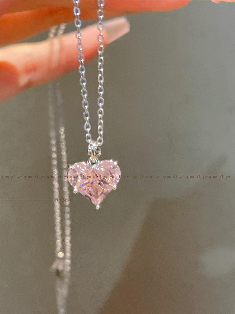 Минималистичный светильник, роскошное сладкое розовое ожерелье в форме сердца в форме сердца, нишевый дизайн, усовершенствованные аксессуары для ожерелья, яркий кулон