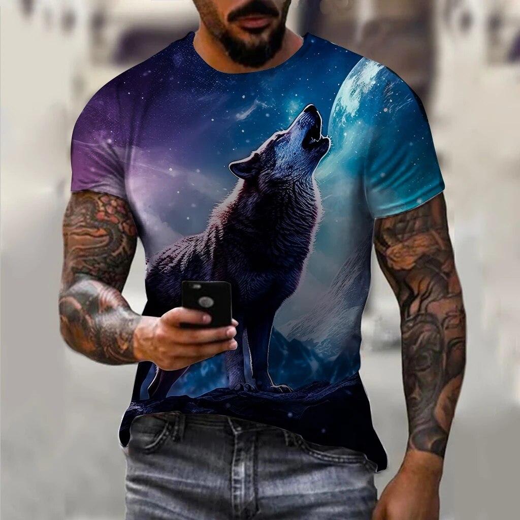 Винтажные футболки для мужчин, топы с 3d принтом «Лунный свет и волк», футболка большого размера с короткими рукавами, футболки в стиле хип-хоп с круглым вырезом, мужская одежда Camiseta