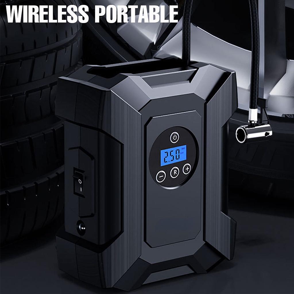 【Многофункциональный】С беспроводным портативным дизайном, автомобильный шинный насос позволяет добраться до всех шин ваших велосипедов, мотоциклов, автомобилей (включая внедорожники). Также оснащен 4 сопловыми адаптерами для матрасов / аэробота / игрушек / спортивного мяча / надувных лодок.