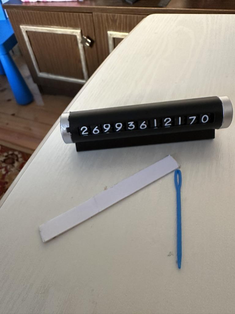 Цифры валялись внутри всей коробки. Цифры магнитные. Цифр много. Номер из 11 символов влазит, но крайние цифры плохо читаемы. Установил 10 цифр, так лучше. Только белый фон виден по бокам, но ни чего. Дешего и сердито. Для крепления используется двухсторонний скотч. То есть придется клеить на торпеду.