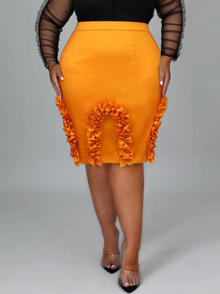 AOMEI Оранжевые юбки с оборками для женщин, элегантные лоскутные юбки-карандаш с высокой талией, эластичные мини-вечерние вечерние знаменитости, большие размеры, новинка, хит продаж