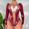 Для женщин Diamond рыболовная сеть чулок Babydoll белье с длинными рукавами пижамы боди черное женское белье женский комбинезон