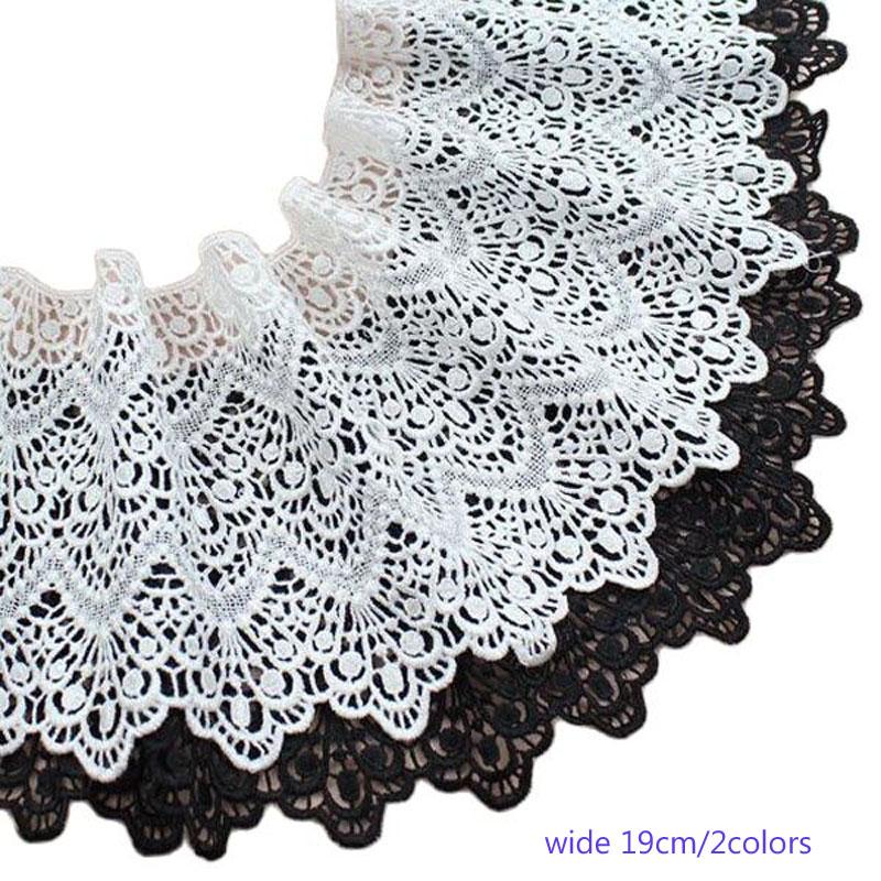 Ширина 19 см, водорастворимая вышивка, белый, черный цветок, кружевная ткань, лента для отделки, сделай сам, вышивание, аппликация, воротник, гипюр, ремесленный декор — купить товар онлайн с бесплатной доставкой по всему миру!