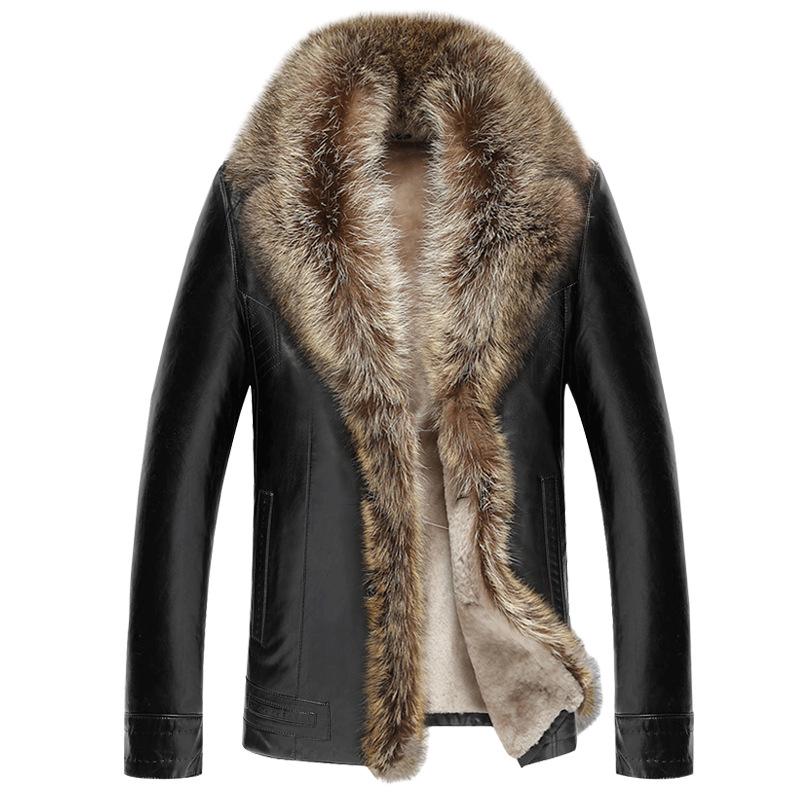 Новое зимнее универсальное мужское меховое пальто с большим меховым воротником из енота средней длины, утепленное пальто из натуральной кожи — купить товар онлайн с бесплатной доставкой по всему миру!