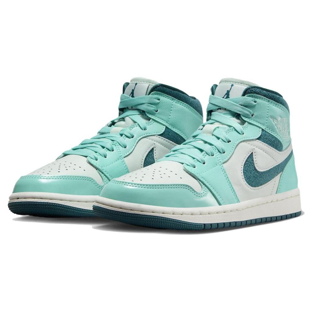 Air Jordan 1 Mid SE Белые бирюзовые женские кроссовки Blue Barely-Green Sail DZ3745-300