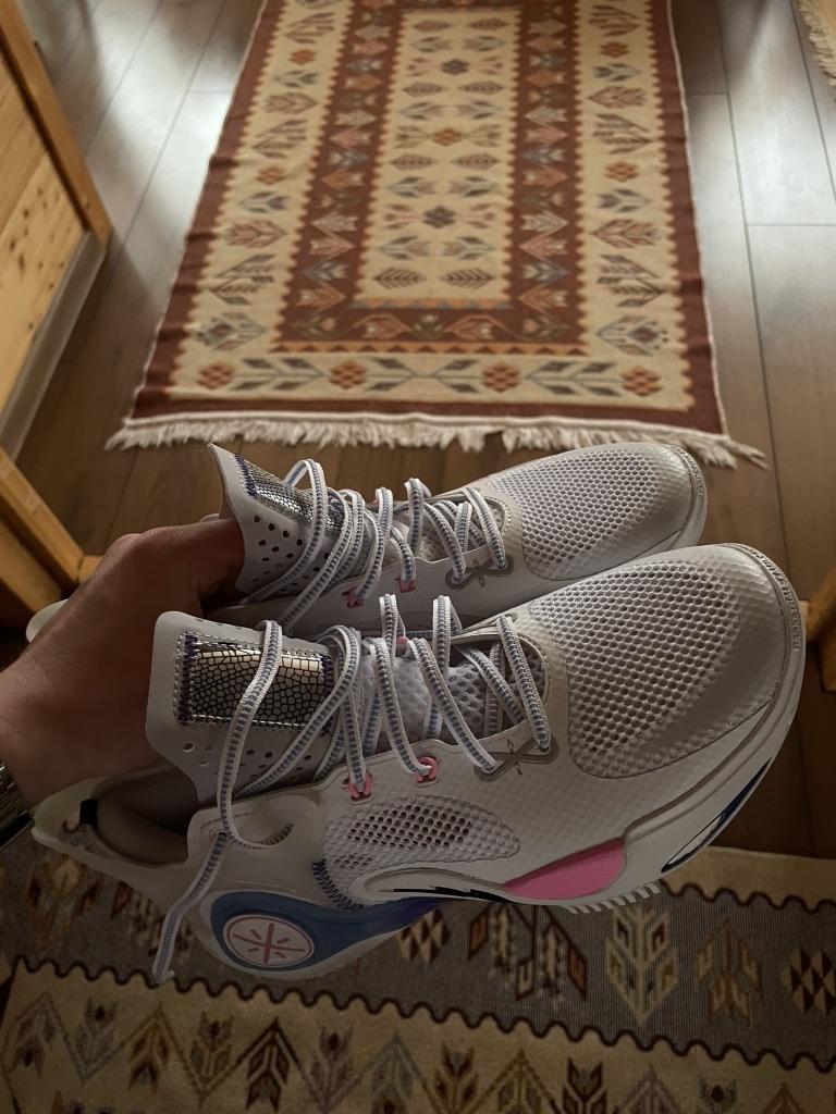 Неплохие очень легкие очень дышащие кроссовки. Сделаны хорошо, аккуратно, подошва норм для баскета. Хороши как вторая сменная пара для игр и тренировок. Судя по всему оригинал, хотя очень переживала на этот счет. Единственное - сыну пластиковая петля натирает под косточкой, видимо тут все очень индивидуально, без примерки не угадаешь. Он худощавый и видимо поэтому косточки сильнее выступают и попадают на эту жёсткую деталь, оак что имейте в виду такой нюанс.