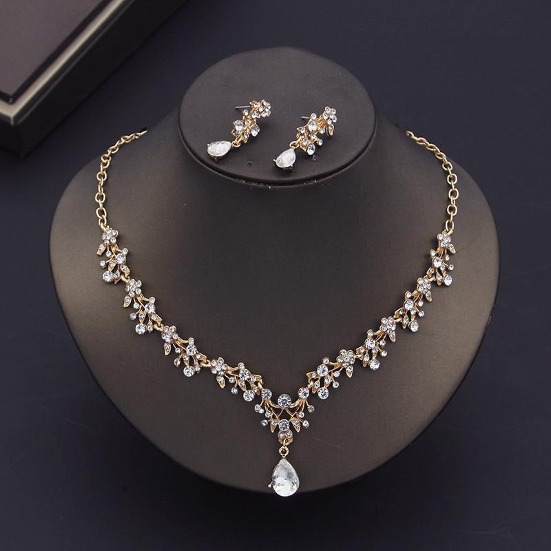 Золотые комплекты ювелирных изделий для невесты для женщин, роскошное колье, ожерелье, серьги, свадебное платье, свадебные комплекты ожерелья, модные — купить товар онлайн с бесплатной доставкой по всему миру!