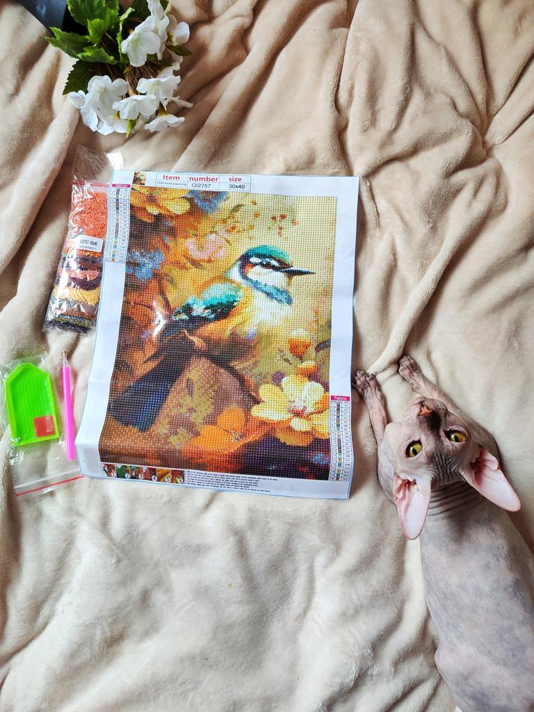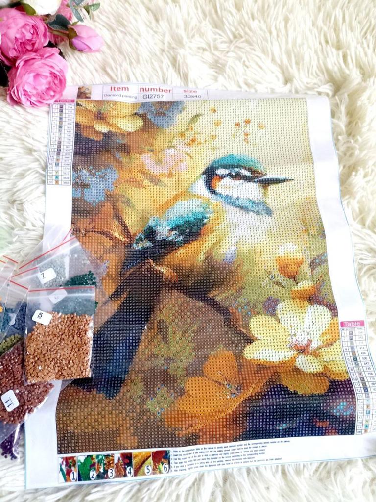 Алмазная мозаика/живопись🐦 Закончена работа. Получилась очень красивая картина. 🎥👉 ✔️Размер 30x40 В набор для алмазной мозаики входит: 📍Тканевая основа для мозаики, покрытая слоем клейкого состава и разделенная на сектора. Каждая клетка помечается значком, соответствующим определенному цвету. Клеевой слой защищен от высыхания и пыли подложкой. 📍Стразы для алмазной вышивки необходимых цветов, упакованные в отдельные полиэтиленовые пакеты с номерными наклейками. 📍Легенда. Она нужна для сопоставления символа клетки на холсте и номера цвета. 📍стилус 📍клей для страз 📍лоток 📍зип-пакетики