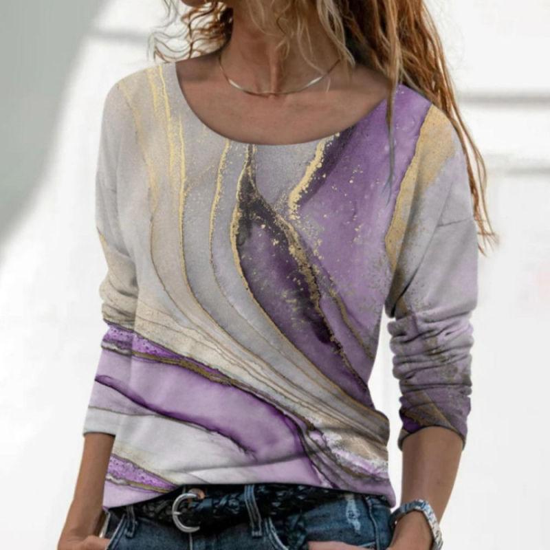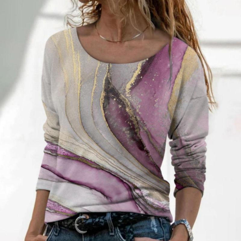 Женская футболка, повседневная футболка для отдыха и выходных, простая футболка с абстрактным рисунком, футболка с длинным рукавом, круглый вырез, большие размеры
