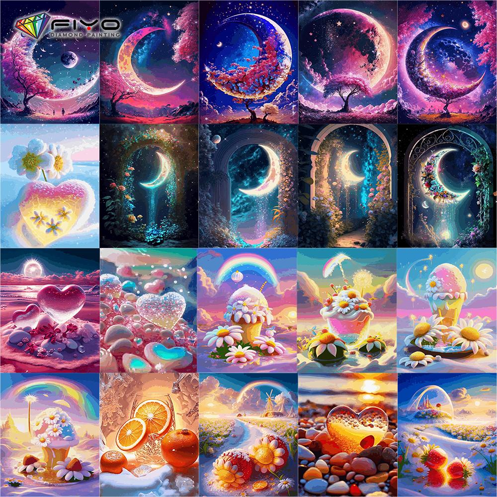 Алмазная картина Полный дрель Цветок Луна Пейзаж Круглая алмазная живопись Ручная работа Фруктовый десерт Diy Алмазная мозаика Картина Украшение дома