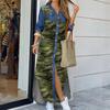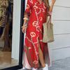 Женское платье макси с принтом, платье-рубашка с длинным рукавом и лацканами, повседневное длинное платье с разрезом по бокам, сарафан Vestidos, большие размеры S-5XL