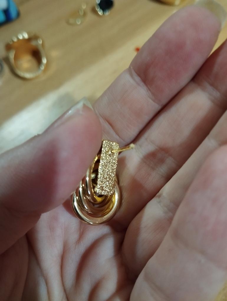 Спасибо, доставка в срок. Хорошие серьги - гвоздики. Колечки между собой скреплены, поэтому звенеть не будут . Продавца рекомендую.